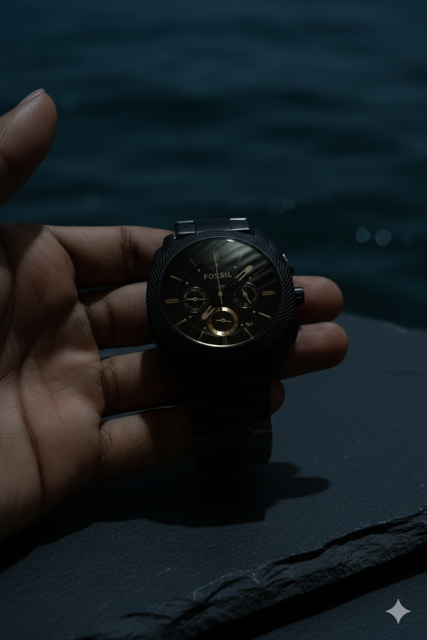 Fossil Black Chronograph Men’s Watch – Bold Elegance in Every Second